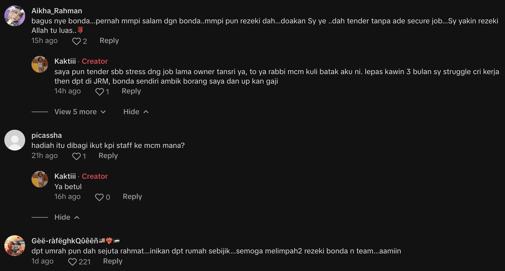 Susulan tularnya video tersebut, netizen turut memuji majikan syarikat itu iaitu Bonda Rozita yang tidak lokek untuk berkongsi rezeki bersama para pekerjanya.