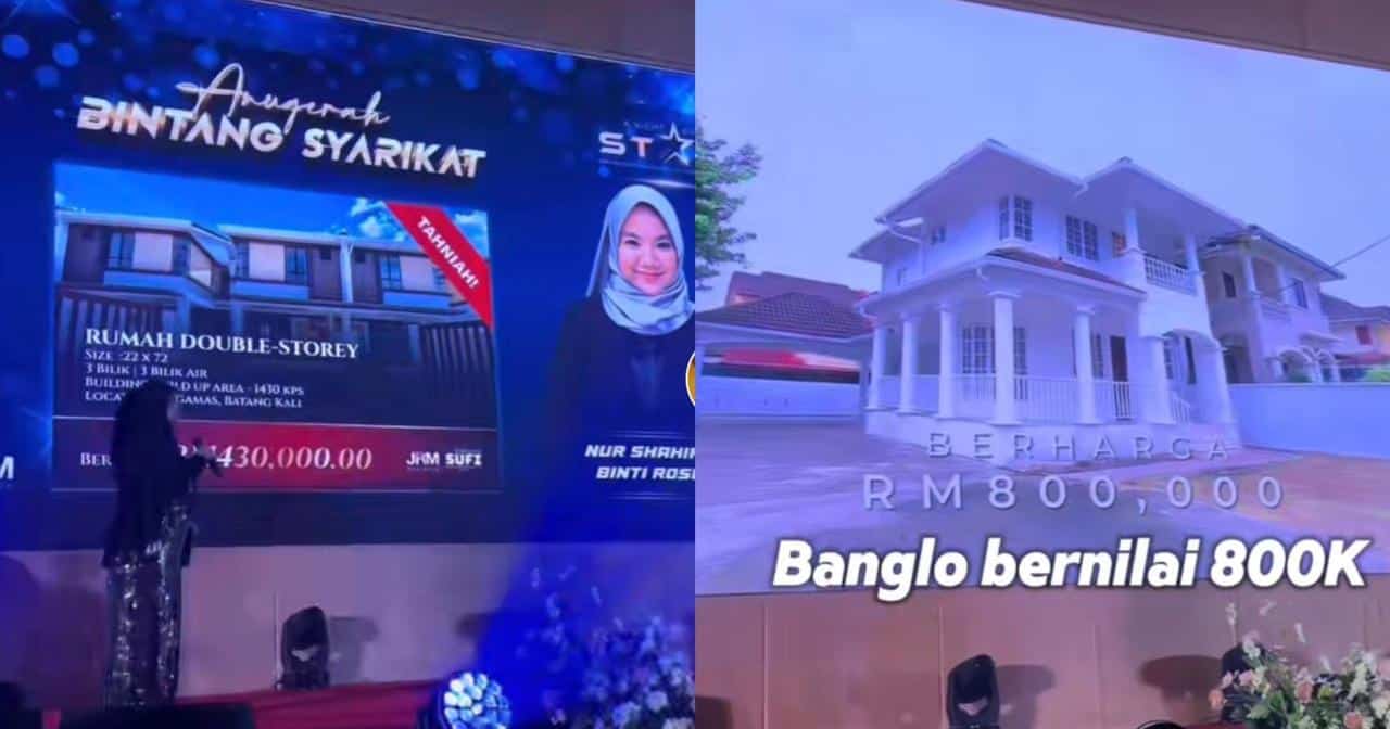 Apa yang membuatkan ramai kagum dengan majikan syarikat tersebut adalah apabila antara hadiah utamanya merupakan sebuah rumah banglo bernilai RM800,000!